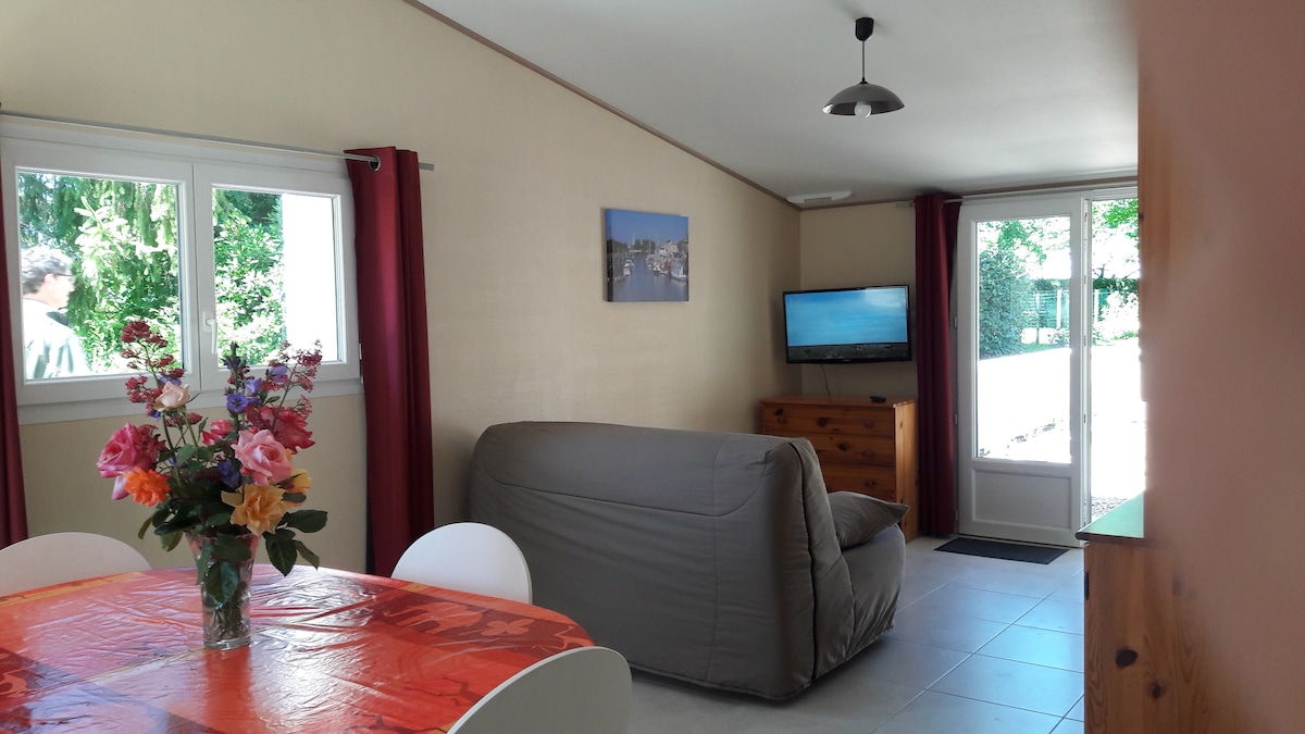 Situada entre Jonzac ville Thermale (15 km) y Montendre (7 km), esta casa le ofrece un alojamiento que consta de dos dormitorios y una sala de estar (sala de estar/cocina totalmente equipada). Una zona de comedor le espera a la sombra del tilo. Está idealmente situado entre Cognac, Saintes, Royan y Burdeos. Puede cambiar de aires en nuestros campos situados entre la tierra y el mar, y descubrir nuestro patrimonio a lo largo de nuestro río Charente.