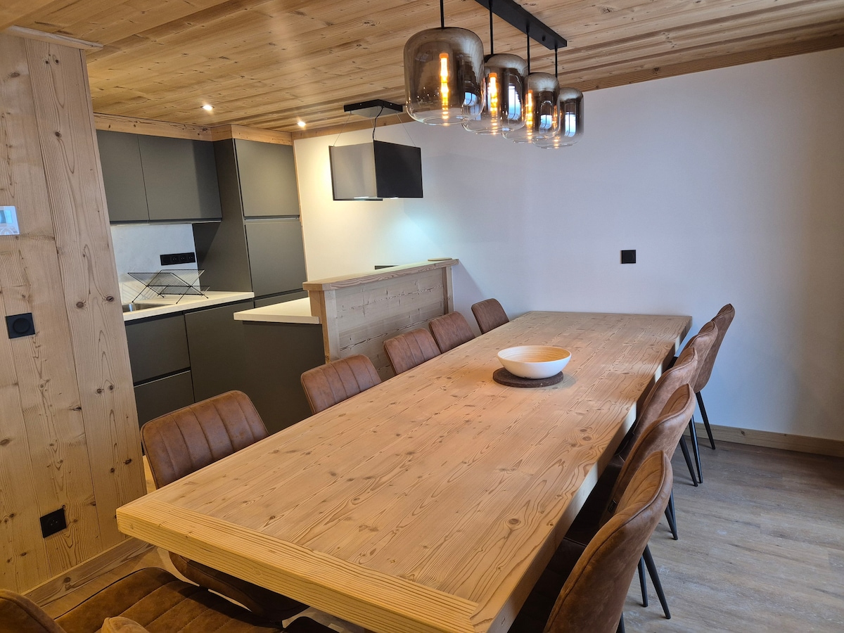 Amplio chalet, clasificado con 4 estrellas, con sauna privada de libre acceso, jardín, gran terraza, barbacoa, tumbonas, 4 dormitorios con vistas a las montañas, 2 con balcones, 2 de 15 m2, televisor «Smart TV» - 4K UHD, 1 baño con bañera, 2 baños con ducha, lavavajillas, lavadora, secadora, aparatos de raclette, pierrade, fondue, aparcamiento privado, guardaesquís, secador de botas de esquí. Fácil acceso a las pistas de esquí en 3 minutos en coche o en autobús gratuito a 200 metros, cada 30 minutos.