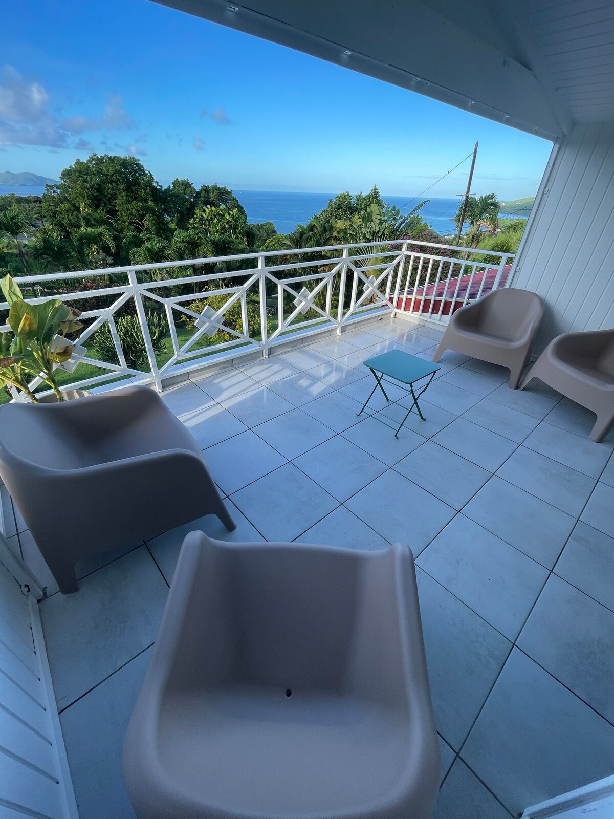 Vivez au rythme de la mer dans ce logement à la décoration raffinée. Profitez d'une vue époustouflante sans aucun vis-à-vis depuis le salon, la terrasse ou le coin jardin de ce T3 neuf. L'archipel des Saintes, l'une des plus belle vue de la Guadeloupe s'offre à vous de façon majestueuse. Au petit déjeuner, admirez le vol libre des frégates. En novembre 2026 vue direct sur la route du rhum et ses superbes bateaux. Une plancha est disponible pour vos grillades en extérieur. La nature vous attend.