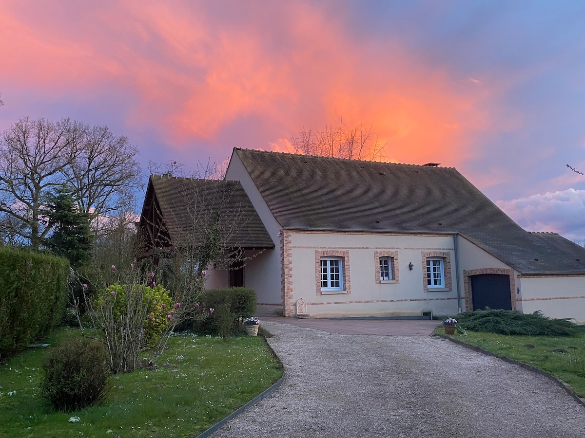 A 1h30 de Paris, maison de charme dans un village typique et jardin entièrement privatif avec jacuzzi, ping-pong, trampoline et piscine. Maison douillette car bien isolée et bien chauffée avec une grande pièce à vivre très conviviale. Belle terrasse exposée plein sud avec espace repas et bains de soleil. Immense jardin autour de la maison Wifi haut débit et charge pour voiture électrique sur demande. Piscine ouverte du 30/04 au 30/09. Animaux bienvenus mais déconseillé pour les animaux fugueurs