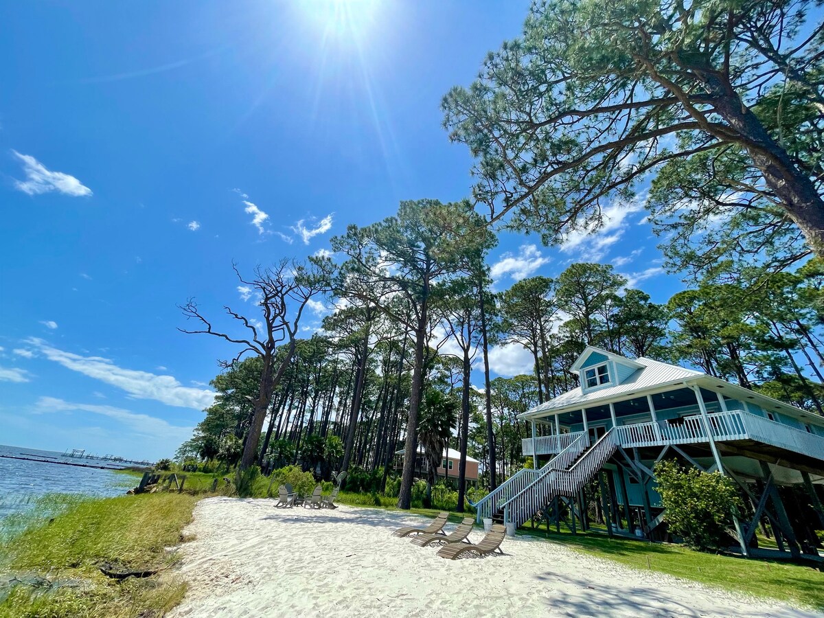 Una casa frente a la playa enclavada entre los árboles con una nueva adición de piscina en marzo de 2023. Disfruta de tu propio refugio privado en la costa olvidada, conocida por su espectacular pesca, scalloping, kayak y senderismo. Un campo de golf está a solo un minuto de distancia. Pesca desde nuestro patio trasero o relájate en hamacas entre los árboles. Hermosas vistas al mar desde el salón/comedor, el dormitorio y la terraza y una playa de arena perfecta para tomar el sol o crear recuerdos alrededor de un fuego de playa. Hay un montón de estacionamiento para barcos/casas rodantes.