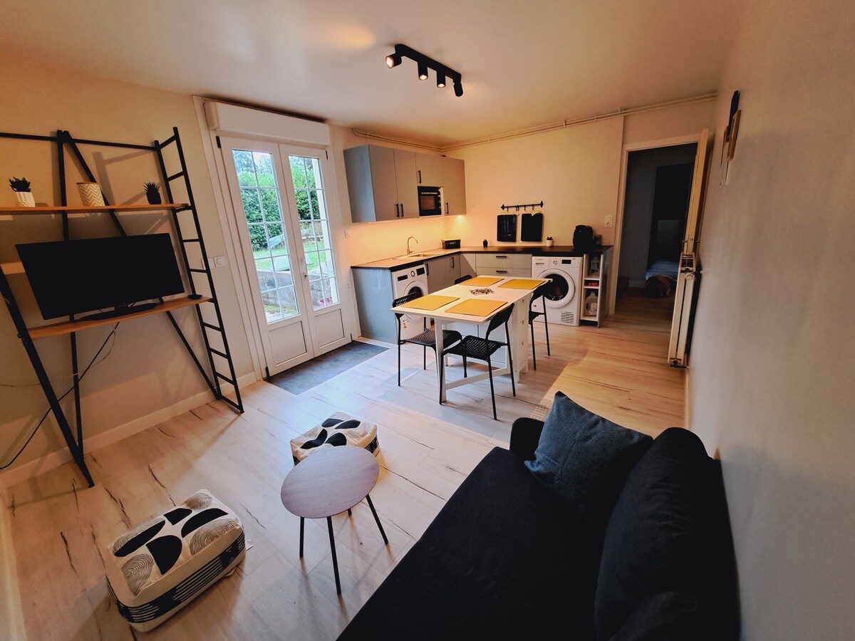 Un studio tout confort au coeur d un écrin de verdure proche de Dinan, Dinard et Saint-Malo pour une parenthèse de sérénité de repos et de découverte. Notre studio est équipé d une petite entrée, d un coin cuisine tout équipé, d un espace repas, d un grand salon ouvert sur une terrasse privée, d une salle de bain avec son coin WC. Double couchage. Le linge de maison est fourni (draps, serviettes de bain) et place de parking devant le studio Séjour dans la vallée de la Rance proche de la mer