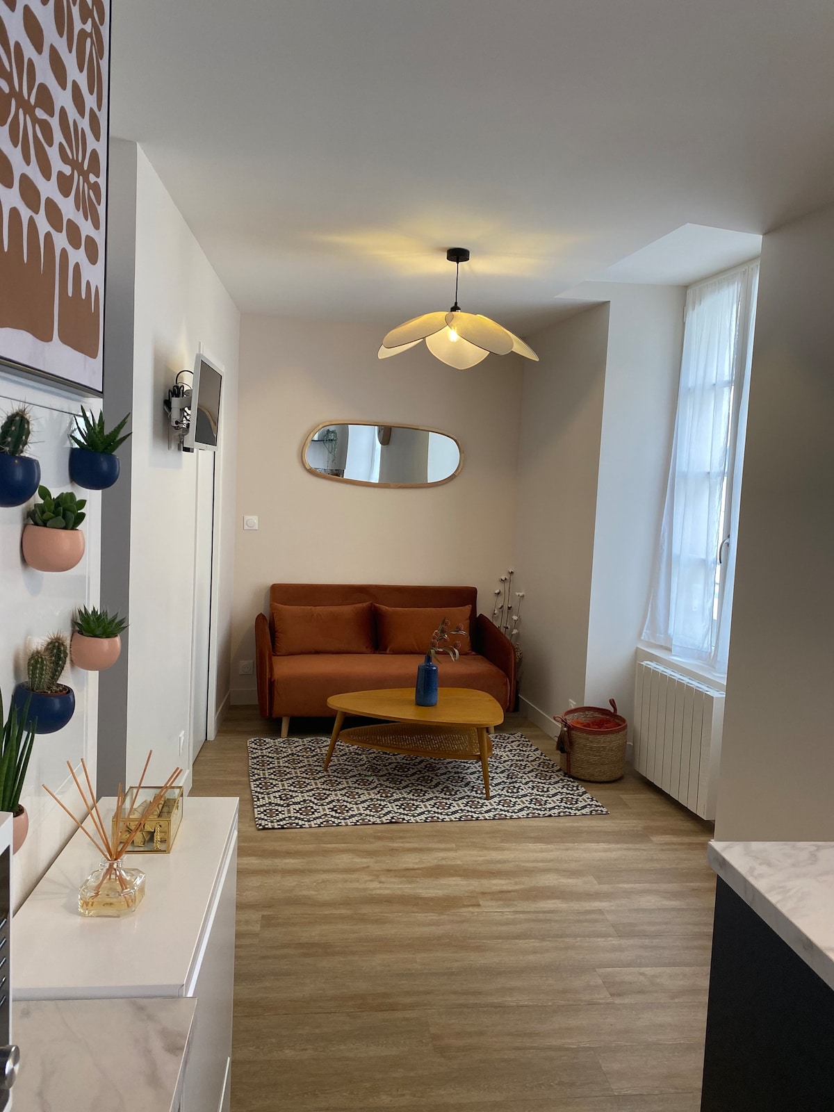 Perfectly placed in the historic heart of Dinan, this beautifully renovated city centre apartment is situated at the top of the famous medieval street, 'The Jerzual'. Dinan's restaurants, shops and historic buildings are just a few steps away. This second floor apartment has one (double) bedroom and a fold-down bed/setee. The stylish kitchen has all new appliances and the apartment is equipped with security doors and smoke and carbon monoxide detectors.