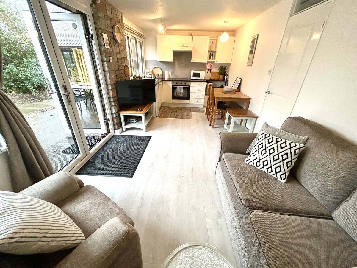 Estamos situados en el tranquilo pueblo costero de Holywell, famoso por su pintoresco telón de fondo de roca de gaviotas y sus dunas de arena dorada. Nuestro nuevo bungalow de 2 dormitorios es un refugio ideal para cualquiera que quiera disfrutar de la hermosa costa de Cornualles. Ofrecemos 2 dormitorios de buen tamaño, un baño principal y una cocina de planta abierta y una sala de estar/comedor que da a un amplio jardín con zona de estar y jacuzzi. Utiliza la estufa de leña en los meses más fríos y acércate con un vaso de tu bebida favorita.