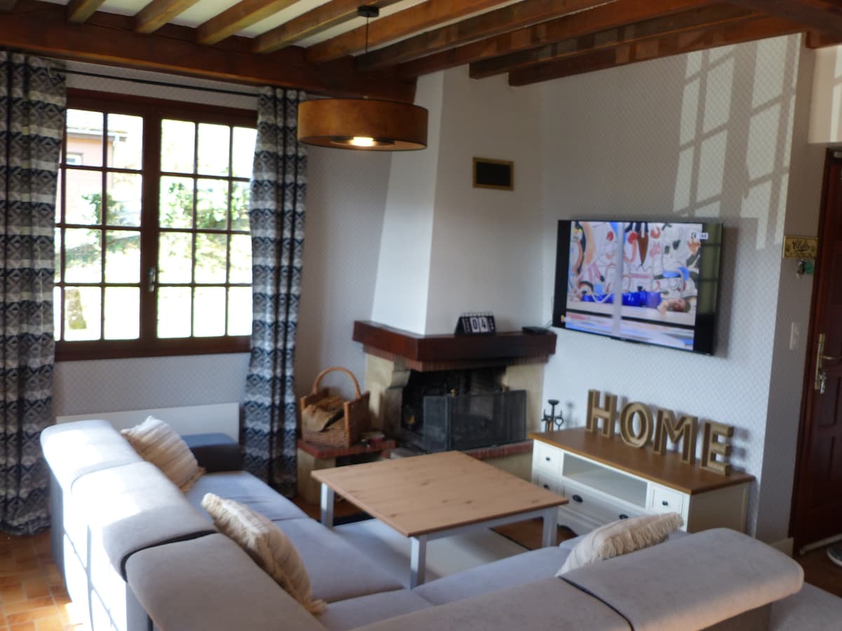 Apartamento en la planta baja con vistas al jardín, con salón, cocina equipada, baño-wc, 2 dormitorios, uno de ellos con lavabo. Terraza exterior. Se proporcionan sábanas y toallas. Café de cortesía durante la estancia. Acceso independiente Mínimo 2 noches. A 20 minutos de VULCANIA, a 1 hora del SANCY, cerca del VIADUCTO DE LOS FADES con su VELORAIL, a 10 minutos de las playas de CONFOLANT y de LA CHAZOTTE, a 40 minutos de CLERMONT -FD y del Estadio MICHELIN (ASM) y cerca del parque de los VOLCANES DE AUVERNIA
