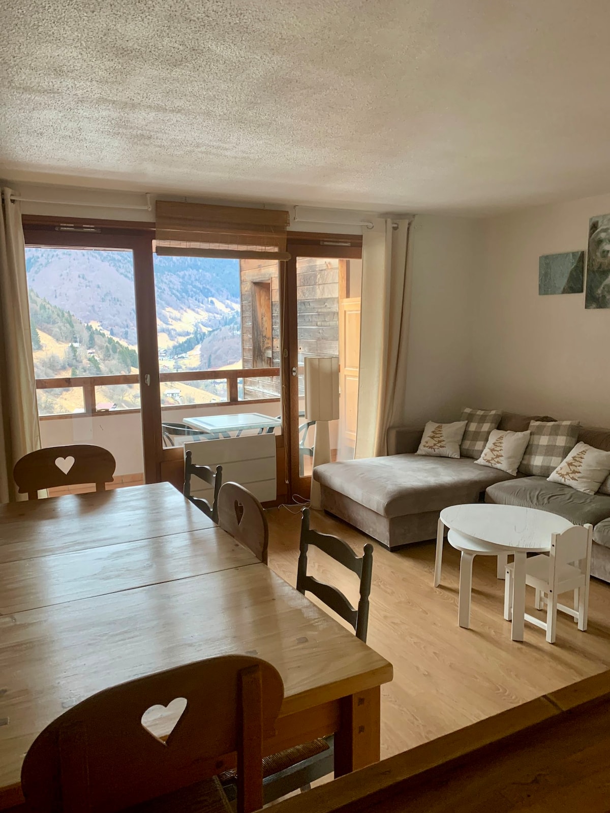 Bienvenido al Droth’ d’ Enfer, el pequeño y acogedor nido de la familia. Somos 5: Cloé y Vincent, los padres, Charlotte, Capucine y Célestine, los niños. Tratamos de mejorarlo, decorarlo, acondicionarlo en cada uno de nuestros pasajes. No es perfecto, pero esperamos que se sienta como en casa y tan bien como nosotros. Apartamento para 5/6 personas con acceso a la piscina y 5 Multipass, bien equipado. La terraza permite disfrutar de una habitación más con vistas a las montañas.