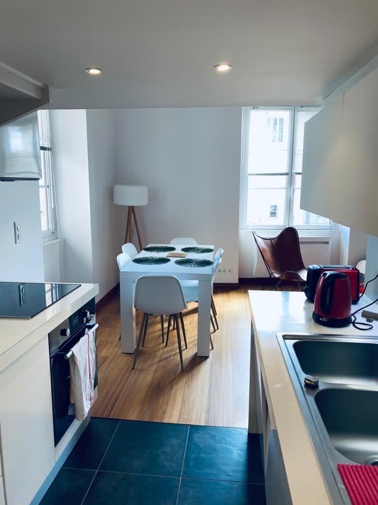 Encantador apartamento Dupleix 55 m2, 2 dormitorios, en pleno centro de San Juan de Luz, cocina equipada, lavavajillas ,mobiliario moderno, playa a 50 m, muy tranquilo, luminoso, cerca de todas las tiendas, 2 .ª planta sin ascensor, aparcamiento (entrada por calle Dornaldéguy).
