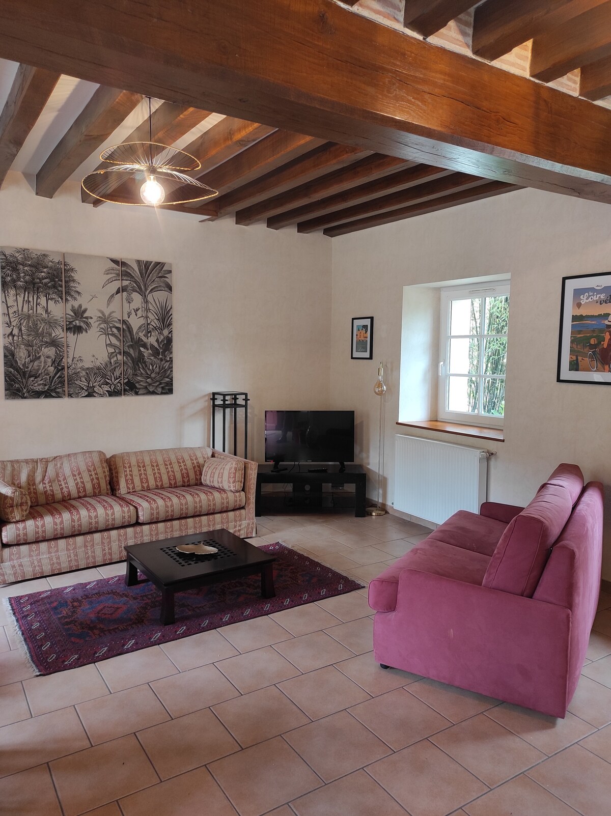 En un pueblo histórico, en el corazón de los castillos del Loira, pequeña casa de campo independiente, en el camino del Loira en bicicleta, orientada al sur con un gran jardín amurallado con vistas al río. La casa de una sola planta está bañada por el sol; tiene ropa de cama. En el corazón del Valle del Loira, cerca de los castillos más bellos, una acogedora casa de campo de un dormitorio con un gran jardín con vistas al río y al sendero «Loire à Vélo». .