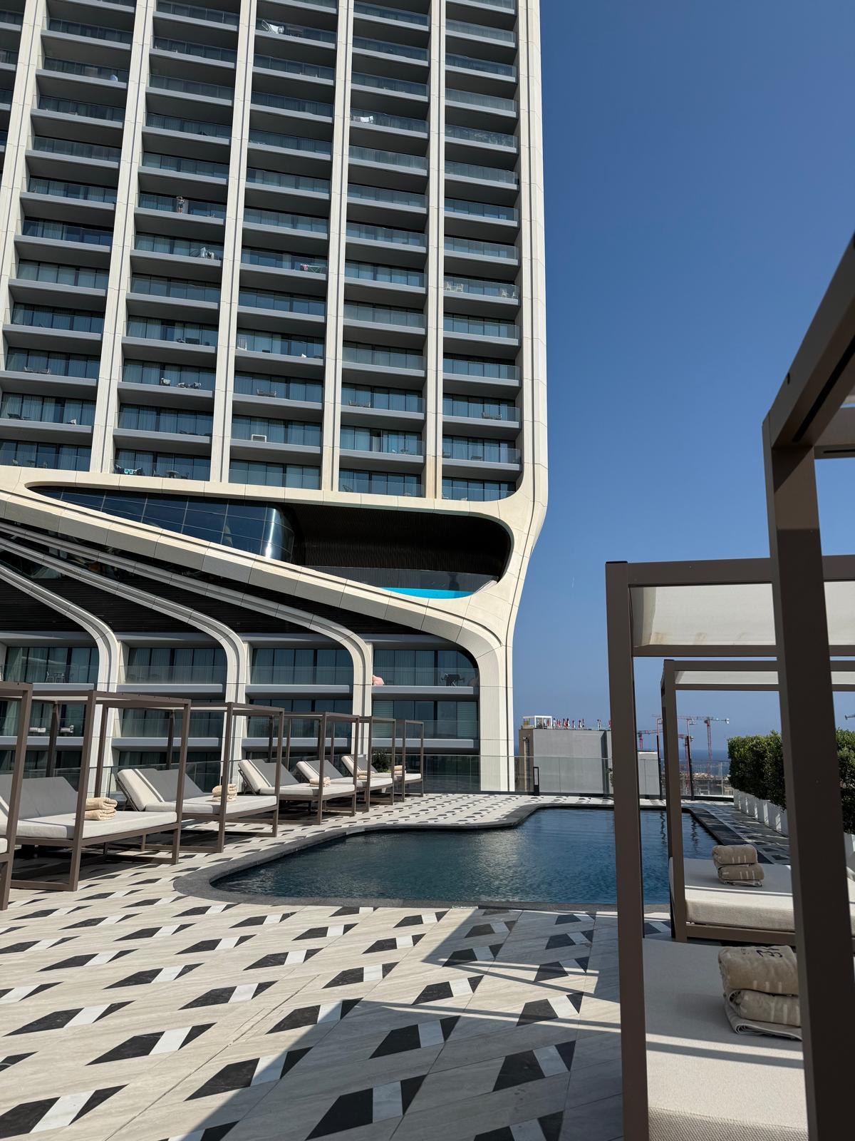 Brand-new designer apartment, 25th floor Mercury Towers by Zaha Hadid. Wake up to breathtaking sea and city views from every corner; including bath, sofa, dining table, or balcony. Relax in a stylish, modern kitchen with fine wine glasses and coffee machine, black marble walls, smart TV with Netflix, and outdoor lounge seating. Enjoy free access to rooftop and tower pools, gym, and spa; simply perfect for work, long stays, or a luxurious getaway. I’d love to host you!