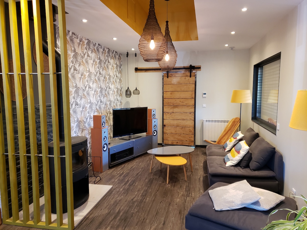 Dans un village du SUD ARDECHE, une maison de standing de 200 m2 avec jardin, une cuisine entièrement équipée, un grand salon avec cheminée, plusieurs chambres au style différent et une salle de bains. Située à 5 minutes du village d'ANTRAIGUES et à moins de trente minutes de la ville d'AUBENAS. Idéal pour les amoureux de randonnées ou pour se ressourcer en famille au milieu des montagnes ardéchoises. Nos amies les bêtes sont acceptées sous réserve de respecter les intérieurs et le mobilier...
