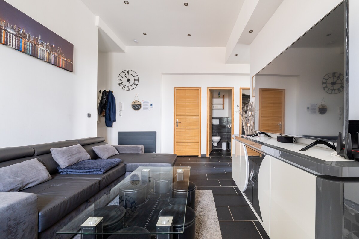 Bienvenido a Flamand Bleu, un apartamento con una decoración inspirada en Flandes y en los viajes. Situado cerca de las calles comerciales y a unos diez minutos de las plazas de Arras, el estudio ha sido diseñado para ofrecer un ambiente cálido y relajante. ¡Ideal para una escapada romántica, una estancia profesional o para descubrir la región! La plaza de los Héroes está a 12 minutos a pie (850 m), la estación de tren a 17 minutos (1,2 km). Restaurantes y tiendas a menos de 5 minutos a pie.