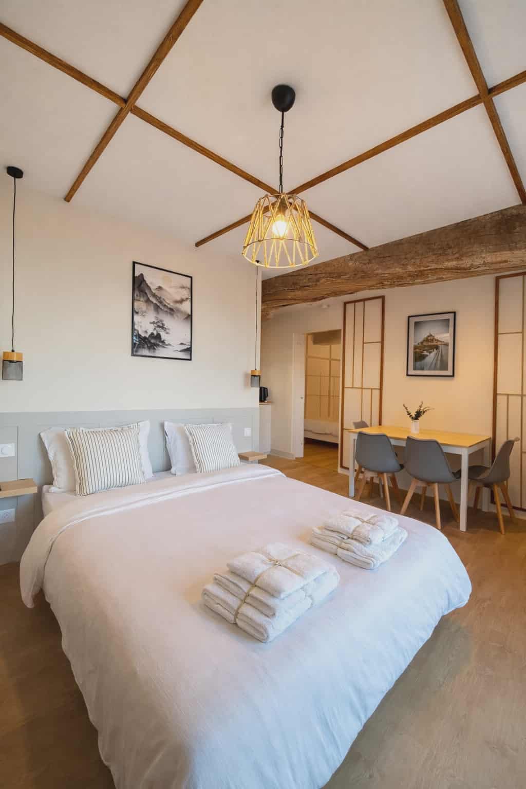 Vivez un séjour unique mêlant charme ancien et modernité ! Situé à Saint-Laurent-de-Terregatte, à seulement 25km du Mont-Saint-Michel, cet appartement de 28m² confortable est idéal pour 2 à 4 personnes. Il combine ambiance contemporaine et inspirations coréennes pour une expérience à la fois cosy et dépaysante. Classé meublé de tourisme 2 étoiles, il offre tout le nécessaire pour un séjour agréable en toute simplicité. Ce logement paisible offre un séjour détente entre amis ou en famille.
