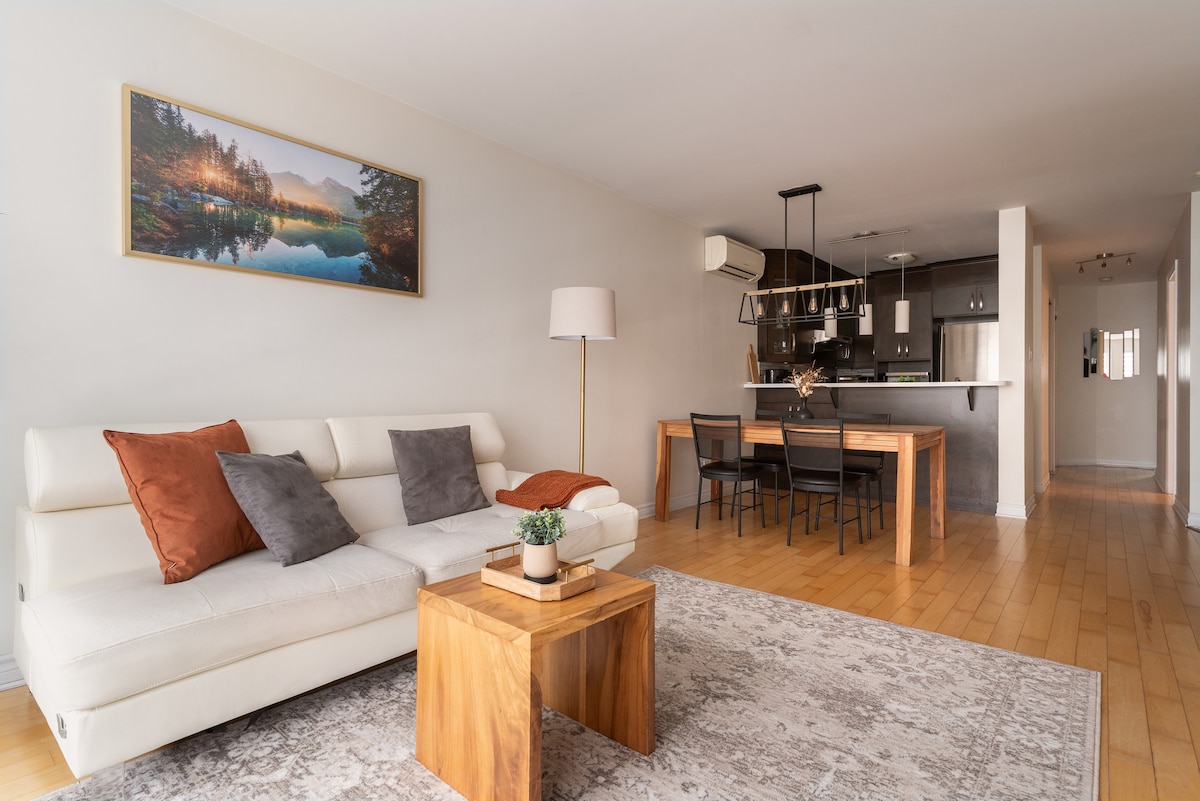 Elegante apartamento de 1 dormitorio totalmente renovado en el corazón de la plaza comercial St Hubert, tiene todo lo que necesitas. A 5 minutos a pie del metro Beaubien y a 15 minutos del centro de la ciudad. El interior es tranquilo y luminoso, con muebles nuevos y totalmente equipado. - Televisor inteligente de alta definición de 55 pulgadas. - Wifi gratuito. - Aire acondicionado - Una cama tamaño queen y un sofá grande y cómodo (6 pies de largo). - Cocina completa. - Zona para trabajar. - Lavadora y secadora.