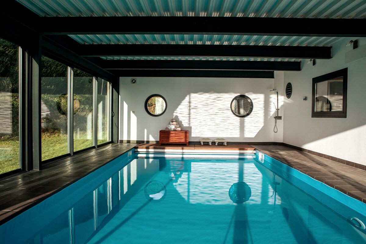 Casa para 6 personas con gran salón cocina equipada 3 dormitorios 2 baños de 90 m2 y al lado del alojamiento zona de relax de 85 m2. Con aseo, guardarropa y ducha. Sauna Hammam Jacuzzi y piscina con natación contracorriente y Aqua bike entre Granville y Villedieu-les-Poêles. A 15 minutos de la playa, a 40 km del monte Saint Michel y a 5 minutos del zoológico de Champrepus. 2 horas de espacio de relajación incluidas en el precio de una noche