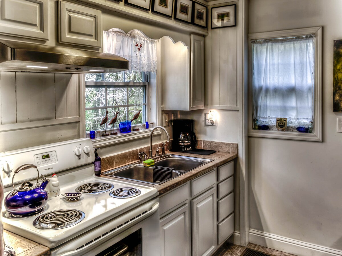 Relájate en esta escapada única y tranquila. Esta pequeña joya es un paraíso para los amantes de la naturaleza enclavado en el bosque en una superficie con privacidad. Siéntate en el porche delantero y observa a los peces Koi nadar en un estanque situado directamente junto a la cubierta. Contempla los magníficos jardines plantados para las aves y las mariposas. Hay un fogón para disfrutar justo al lado del porche delantero y un ahumador de huevos verdes para cocinar. Esta casa de campo es un plano de planta de concepto abierto con tragaluces en todas partes con toneladas de luz natural