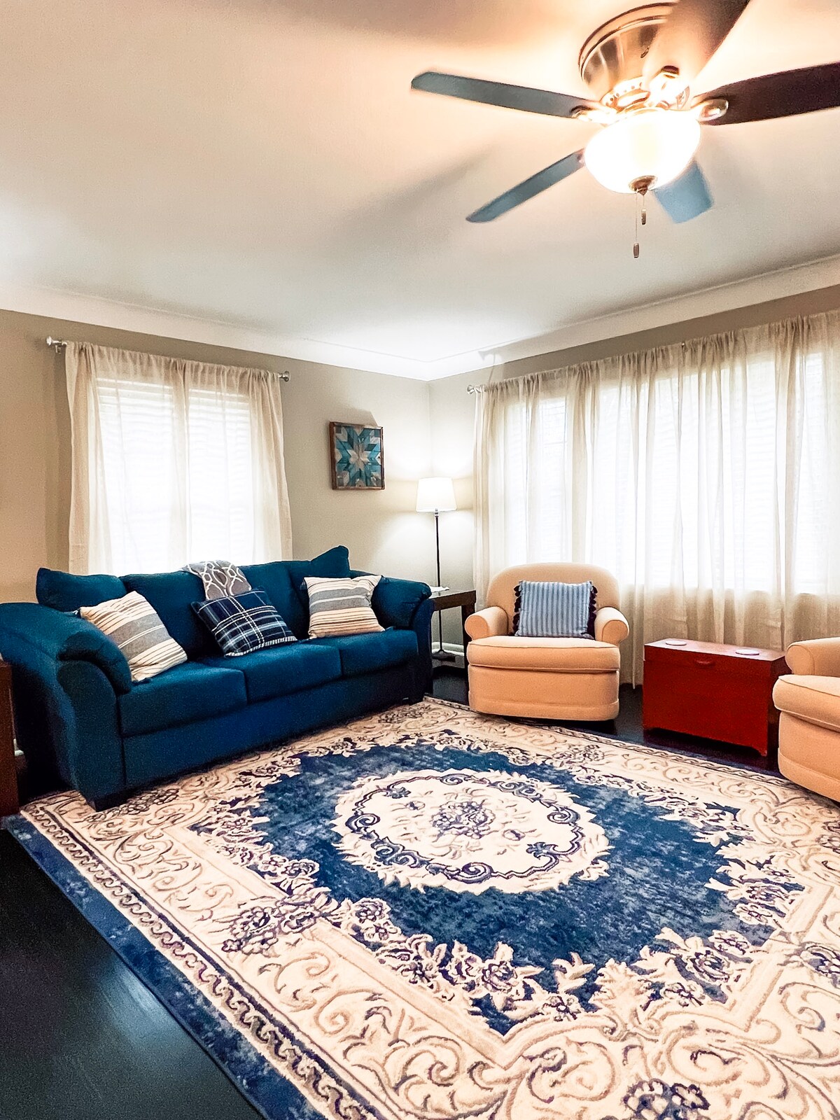 Te encantará nuestro alojamiento. ¡Lee nuestras reseñas y compruébalo por ti mismo! Disfruta de una experiencia de lujo en este céntrico alojamiento. Ofrecemos una casa de un dormitorio y un baño. El dormitorio tiene una cama tamaño queen y el sofá tiene una cama extraíble tamaño queen de espuma viscoelástica. Hemos añadido un escritorio en el comedor y una bonita barra de café en la cocina. Puedes disfrutar del porche delantero cerrado mientras te relajas en las mecedoras. Tenemos una lavadora y secadora de tamaño completo ubicadas fuera de la cocina.