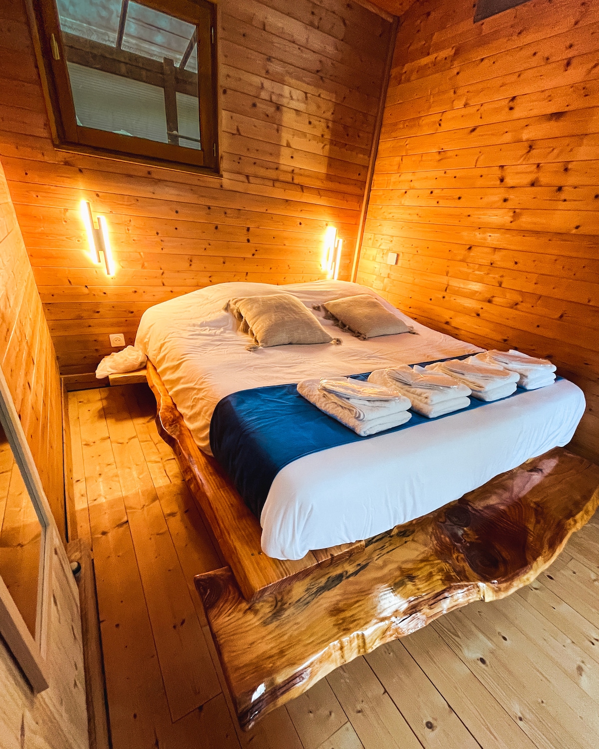 Venga a relajarse en este hermoso apartamento de 50 m² totalmente diseñado en espacio abierto, con el baño abierto a la habitación principal. Disfrute de una copa de champán en un jacuzzi y duerma bajo un cielo estrellado. Aproveche también la terraza para tomar un poco de aire por la noche, o para desayunar frente a la naturaleza. Todo para estar en pareja o solo durante una noche tranquila. Opción de decoración o aperitivo bajo petición