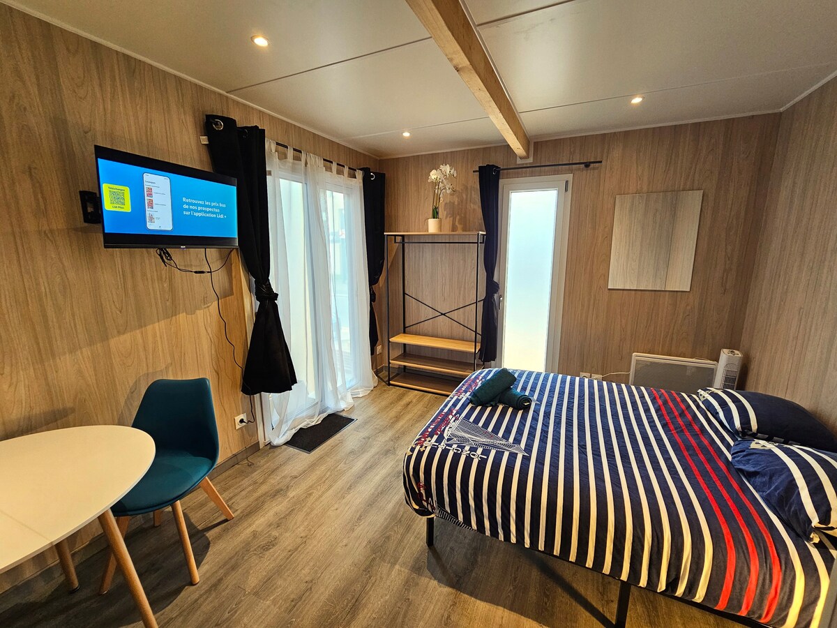 Tenemos el placer de recibirle en el «Petit Lupin»: nuestro estudio junto al mar, acogedor, con entrada independiente y decoración cuidada, situado en nuestra casa de arquitecto. Disfrutará de su terraza, que estará reservada para usted y que está bien orientada, así como del jardín y la piscina climatizada que compartimos con usted Se proporcionan sábanas, toallas y ropa de cama. El aparcamiento y el wifi son gratuitos