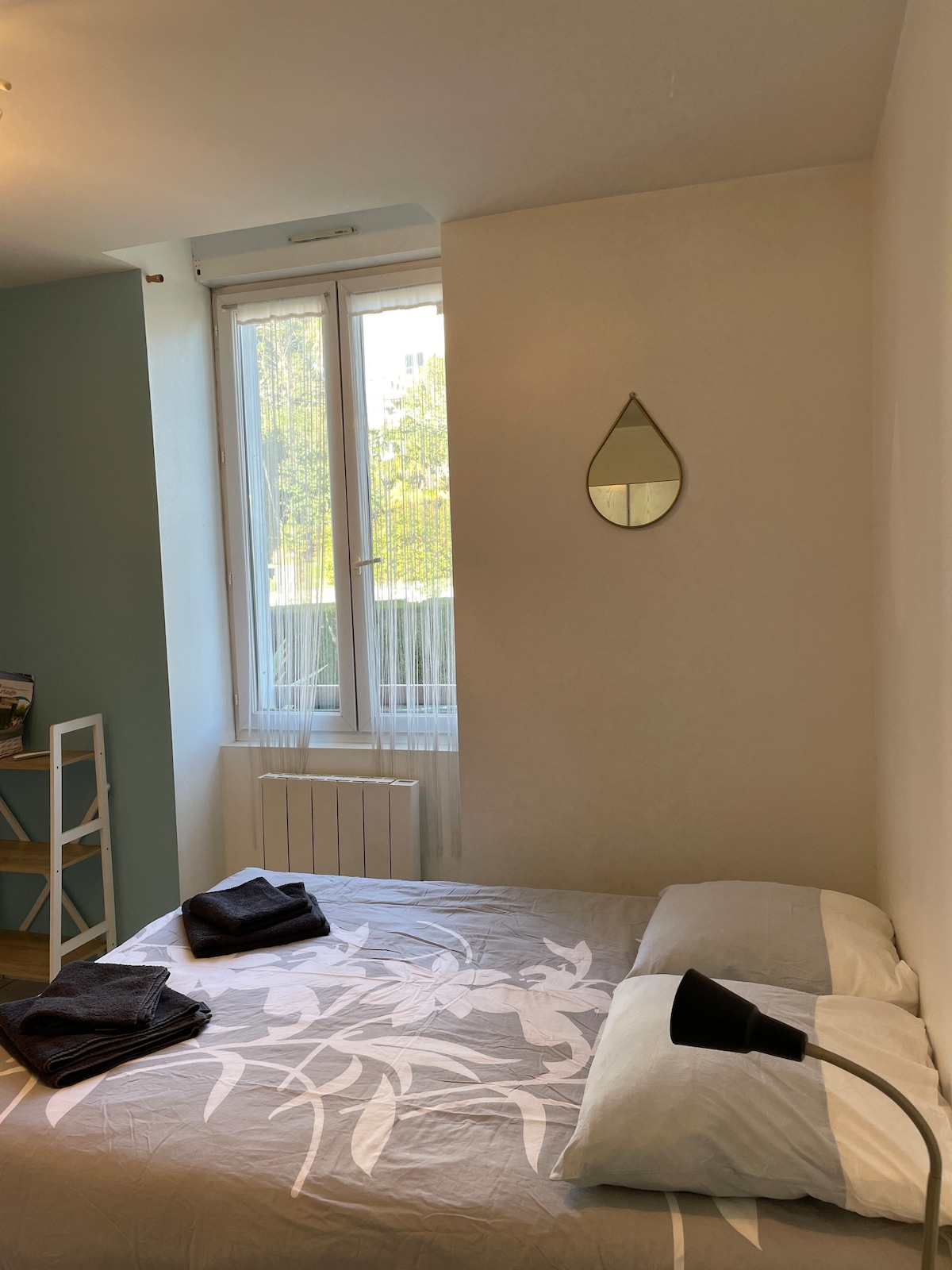 Estudio de 30 m2 en la planta baja de un edificio con carácter en calle semipeatonal, cerca de todas las tiendas de alimentación, administraciones, cines, restaurantes, transporte público, etc........ algunas escuelas y centros de formación. 1 cama grande de 160, escritorio, televisión, amplio espacio de almacenamiento, wifi, chimenea, ventana al jardín, cocina independiente equipada, baño privado con ducha y aseo. Estacionamiento de pago a 50 metros excepto por la noche, domingos y feriados. Aparcamiento gratuito a 300 metros