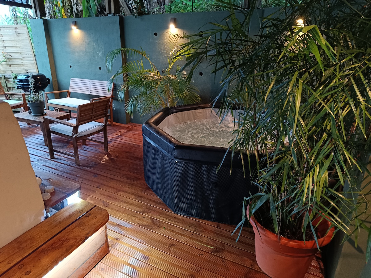 ¡A esta casa nos encanta! Una pequeña casa centenaria de madera de hierro... Un jardín exuberante rebosante de plantas tropicales... Dos varangues y una terraza con brasero... Un diseño cuidado... Al lado, el Cap Malo para sunsets fabulosos, y la increíble piscina costera del Barril... Dos baños al aire libre, con ducha o bañera... y por la noche, si lo desea, las suculentas comidas de Nathalie entregadas a su mesa... ¡Será feliz en casa de la abuela Malvado!