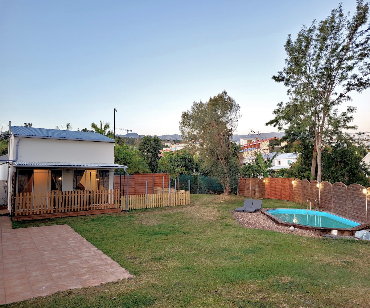 Situada en la Ligne Paradis, nuestra pequeña casa le abre sus puertas para una estancia corta o prolongada de relajación, encuentros y descubrimientos. Mi marido y yo estaremos encantados de hacer que su estancia sea lo más placentera posible. Estamos a 15 minutos en coche del puerto de St Pierre capital del sur , y de sus playas. Disfrutará de su mercado de feria (3.º de Francia este año) el sábado por la mañana.