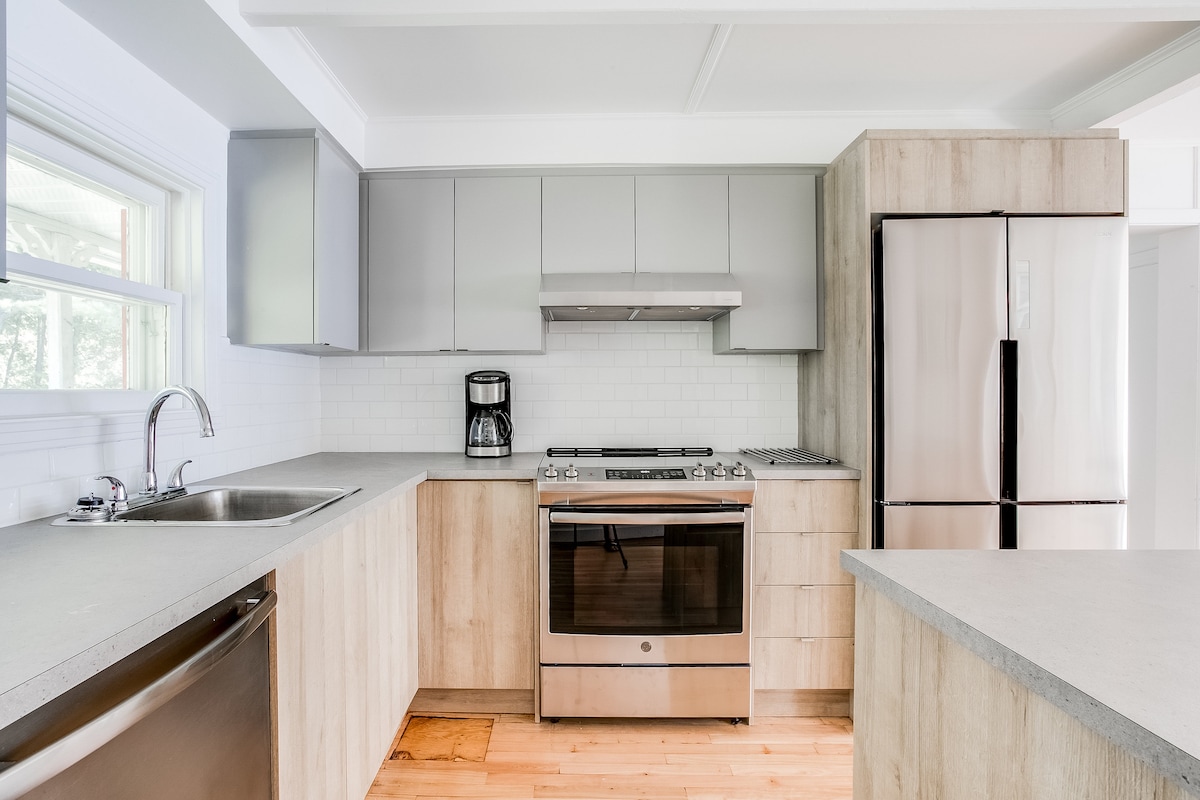 Le damos la bienvenida a Meraki Chalet, un refugio junto al río en Val-Morin, a una hora de Montreal. Ubicado en 1,5 acres privados a orillas del tranquilo North River, este chalet de tres niveles está diseñado para grupos numerosos que desean relajarse de verdad. En primavera y verano, zarpe en kayak desde el muelle privado, reme por el río, recorra los senderos del bosque y termine cada noche en la bañera de hidromasaje techada con capacidad para 9 personas. Capacidad para 14 personas.