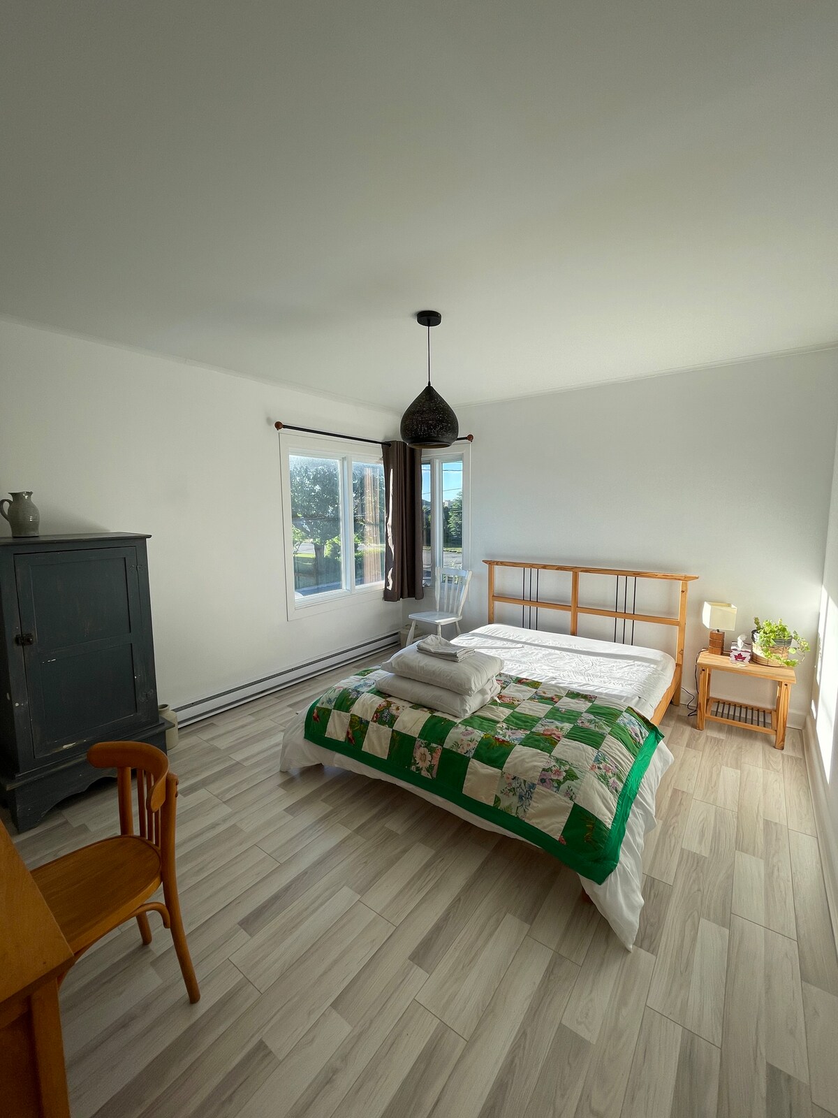 ¡Apunte al corazón del centro de la ciudad y alójese en el Bull's Eye de Matane! Este estudio totalmente equipado anexo a nuestra residencia tiene su entrada independiente y le ofrece: • Baño privado con ducha • Cocina americana: placa de inducción, horno tostador, microondas y mininevera con congelador • Cama matrimonial • Wifi • Televisor inteligente con soporte articulado • Cerradura electrónica + código personal • Aparcamiento Con: accesorios de cocina, toallas, ropa de cama, productos de baño.