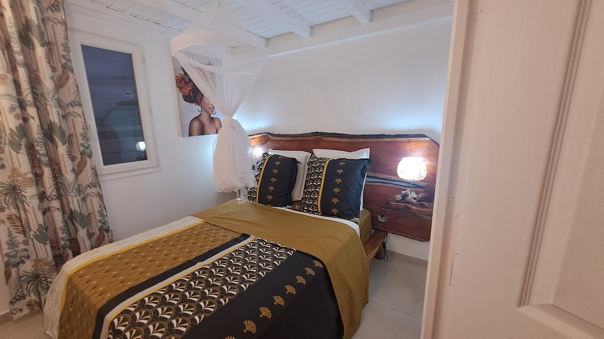 A 10 minutos de Deshaies y cerca de las playas de Clugny, Tillet, la Perle y Grande Anse, este bungaló independiente ofrece tranquilidad y comodidad. Incluye un dormitorio principal y una entreplanta, ideal para una pareja o una familia con dos hijos (no apto para 4 adultos). Disfruta de una cocina equipada, una terraza sombreada, aire acondicionado, wifi y una gran piscina familiar para unas vacaciones relajantes en Guadalupe.