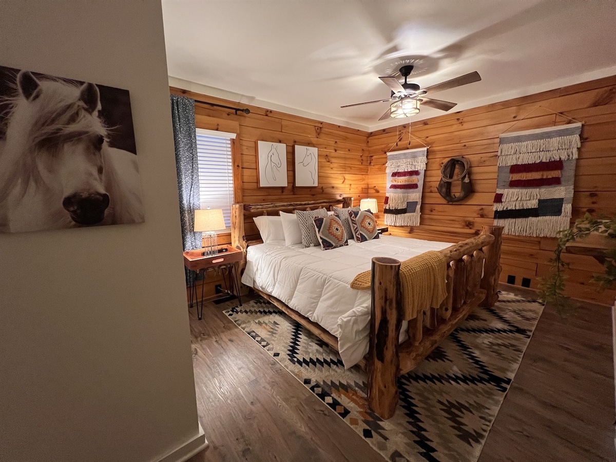 Ubicado en el borde de Hot Springs, a pocos minutos del centro de la ciudad, Oaklawn y la garganta de Gulpha, nuestras cabañas estatales naturales fueron diseñadas pensando en ti. La cabaña Wildlife es una de las cuatro cabañas únicas que ofrece dos dormitorios y dos baños. Hay un pintoresco sendero para los niños y una zona de juegos compartida y una fogata. Nuestro objetivo es brindarle una experiencia que no olvidará pronto. Permítenos ayudarte a que tu próximo viaje a la ciudad del spa sea inolvidable.
