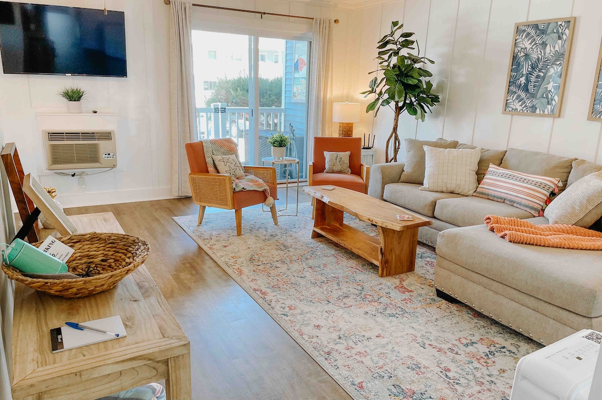 Bienvenido y síguenos en Instagram (the_blue_palm_ocmd) para ver recorridos por la casa y recomendaciones locales. Este alojamiento de 2 dormitorios y 2 baños está elegantemente decorado con todo lo necesario e incluye 2 plazas de aparcamiento. ¡No encontrarás una ubicación mejor en el centro de la ciudad! ¡Está a pocos pasos de la playa (sin cruzar la carretera!) y a poca distancia a pie de muchísimos sitios! También hemos incluido todos los servicios que necesitas para que tus vacaciones sean sin preocupaciones. ¡ROPA DE CAMA/TOALLAS INCLUIDAS, suministros de playa, cocina completa, wifi, televisores, lavadora/secadora, etc.!