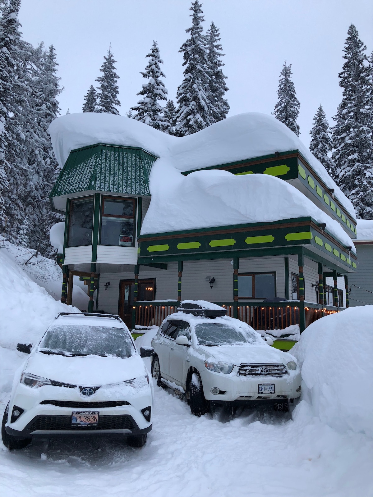 Visit our cozy (but large) 30-acre Vernon Chalet, minutes from Silver Star Mountain. Surrounded by a forested provincial park, there’s miles to explore for skiers, equestrians and hikers alike. Bring your horses! We have pastures! Our house boasts 6.5 bedrooms and is suited for large groups. We've got a great spot on the mountain with the perfect valley view. Not to mention, we have a hot tub and sauna. We're so grateful to have such an epic place to share with you! Family owned and operated.