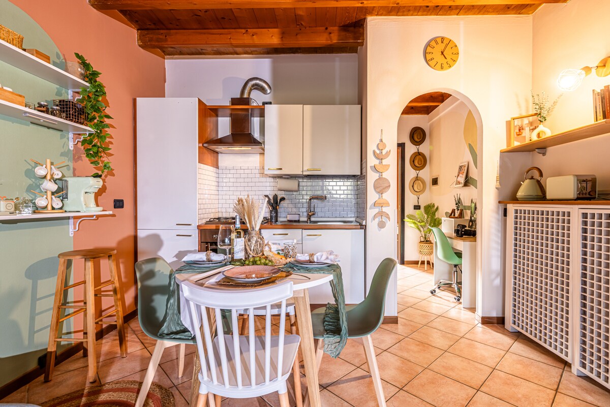 Los colores brillantes de la casa son ideales para experimentar plenamente la magia del lago de Garda. Aléjate de la rutina diaria y pasa momentos únicos con tus seres queridos, tal vez almorzando en compañía en la gran terraza con vistas al lago. En verano, no hay nada mejor que darse un chapuzón en la gran piscina, desde la que se puede admirar la belleza del lago de Garda.