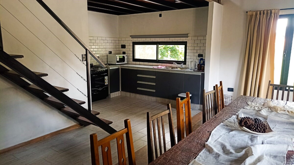 Loft de estilo Nórdico con todas las comodidades, con un gran parque con piscina y solárium. Cuenta además con un sector semicubierto con parrilla, baño en sector exterior. Ubicado en un pueblo pequeño de ámbito rural que ofrece mucha tranquilidad y seguridad.