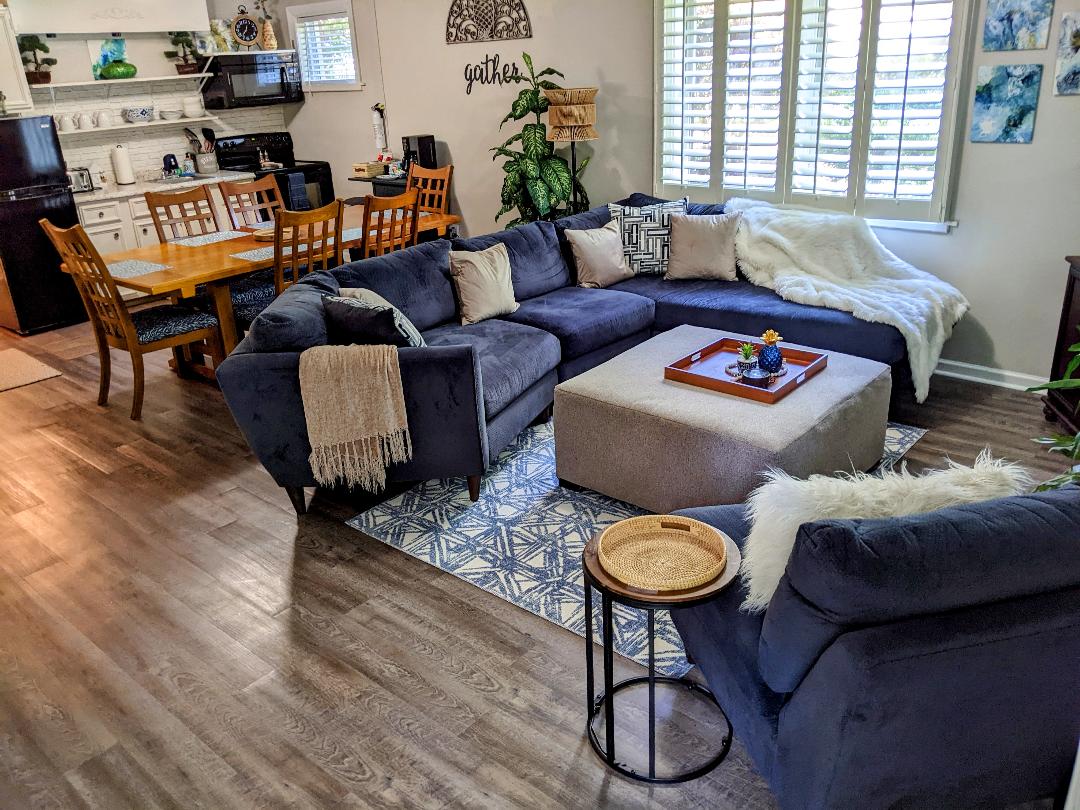 Apartamento de planta baja recién renovado, 2 dormitorios, capacidad para 6 personas cómodamente con 2 camas tamaño king/1 cama tamaño queen, 1 baño (sistema de agua caliente sin tanque), entrada privada y acceso sin llave, mucho espacio de estacionamiento para 3 coches. Cocina completa con café, desayunos fáciles, palomitas de maíz, lavadora/secadora, sábanas, toallas. ¡Una fogata privada para hacer smores! ¡Cerca de todo! A 4 millas del centro de la ciudad. Este es un barrio familiar tranquilo... ¡NO se permite fumar en el alojamiento, NO se admiten mascotas y NO se permiten fiestas!