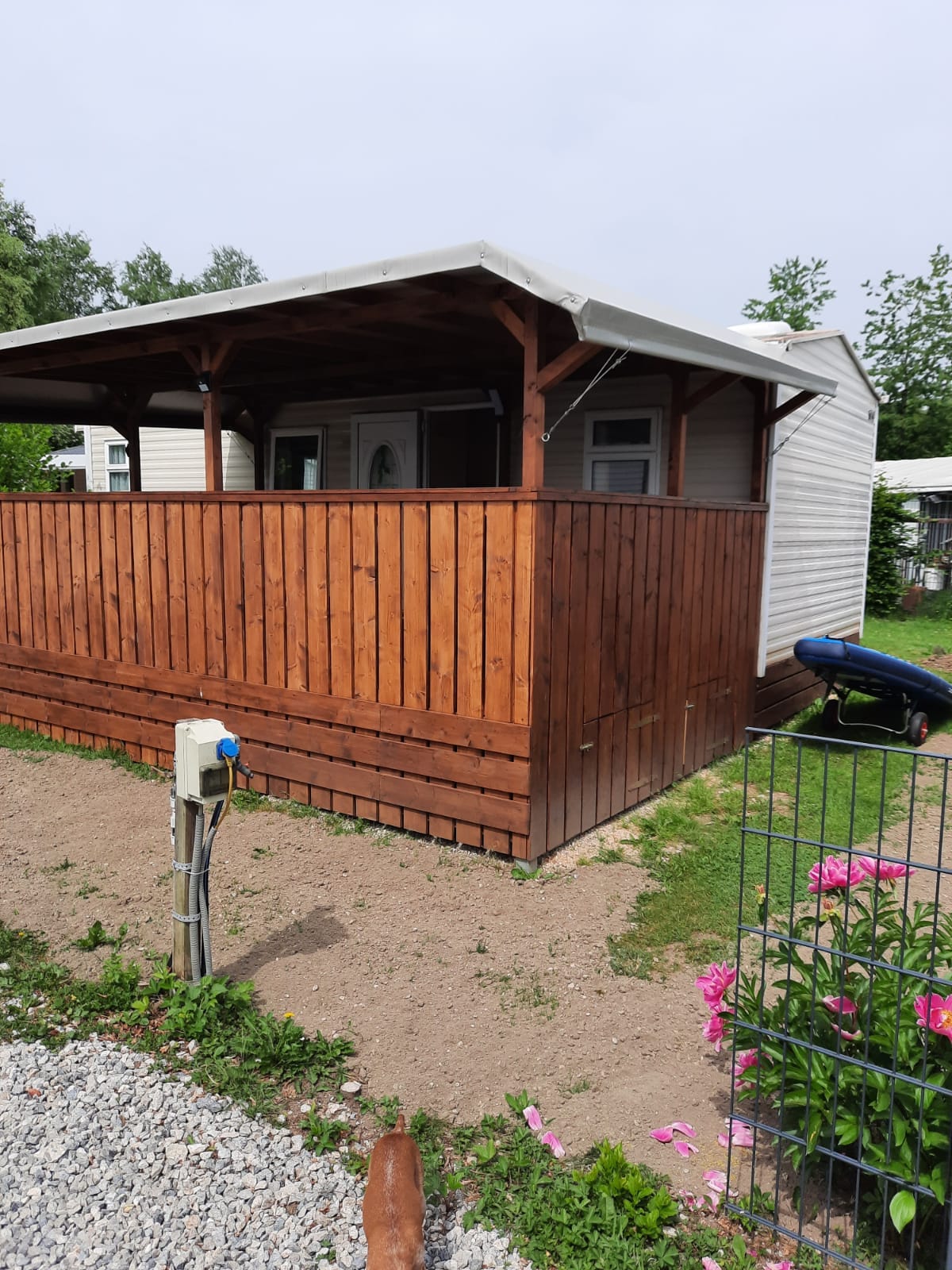 2 dormitorios, 1 sala de estar y un baño con inodoro. También se proporciona una gran terraza y cocina. El número máximo de huéspedes es de 5 personas y 1 niño. La playa está a unos 200 metros de distancia, el parque infantil también está disponible en el campamento. La funda del edredón y las toallas/toallas de ducha están listas para ti. No se permite fumar en los chalets ni el acceso a Internet. Si quieren lavar la ropa y secar, las lavadoras también están allí. También se proporciona aire acondicionado.