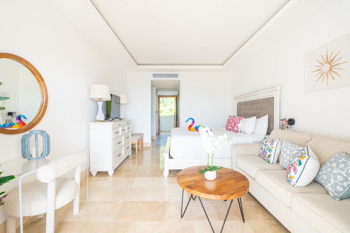 ¡Disfruta de unas vistas increíbles al mar y al centro vacacional desde tu balcón! Este hermoso apartamento está equipado con 2 televisores inteligentes de 60 pulgadas, wifi, 3 dispositivos Alexa para tu comodidad y una cerradura inteligente. Este apartamento forma parte del Hotel Hacienda Samaná Bay, donde tendrás acceso a sus piscinas, bares y restaurante. Con Playa Cayacoa a 5 minutos en coche, ¡este apartamento es un sueño hecho realidad!