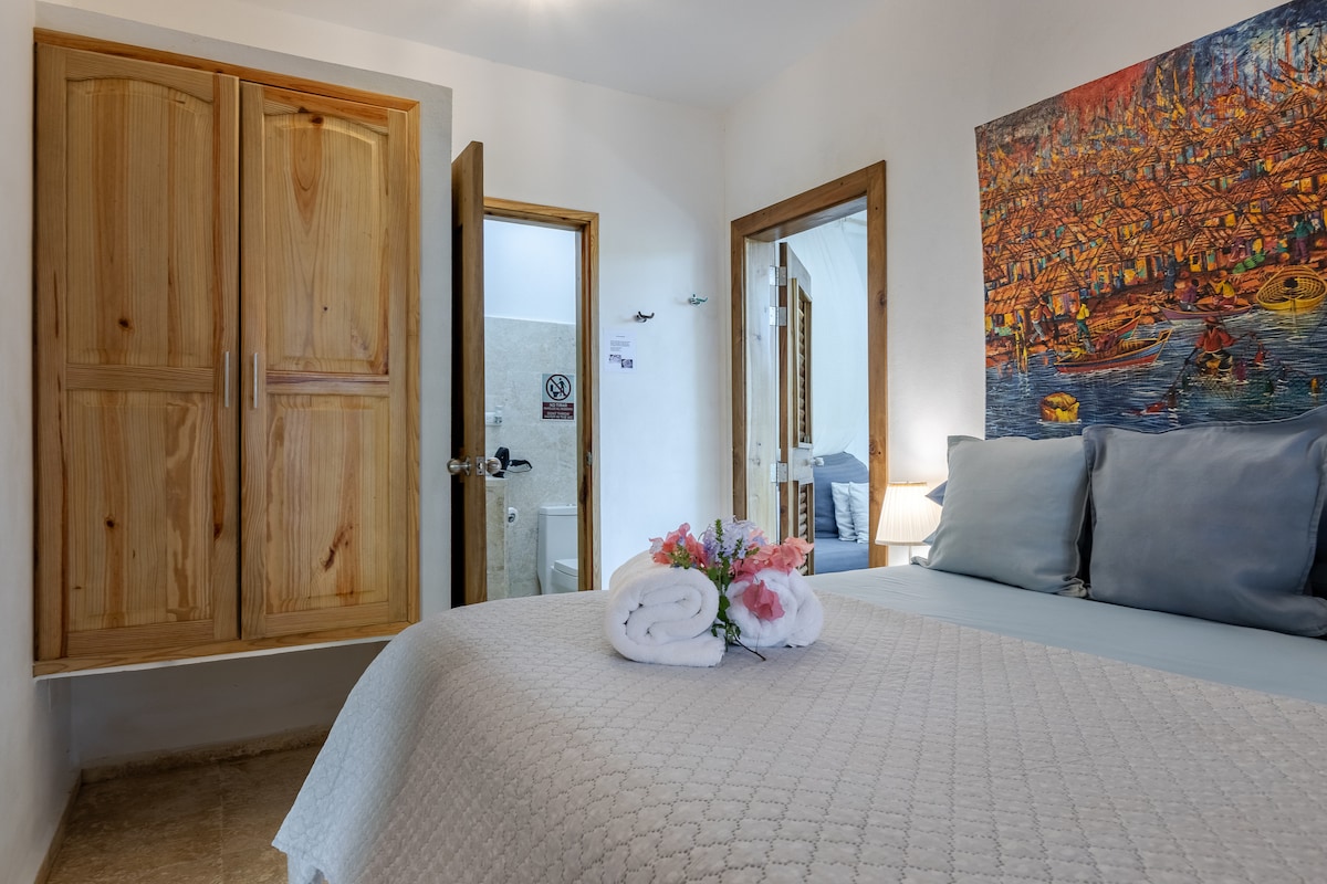 Escápate al paraíso! Hospédate en este bungalow colonial independiente rodeado de un hermoso jardín tropical , a pocos minutos de la playa. Relájate con aire acondicionado, cama King, wifi, Netflix y seguridad nocturna. A pasos de tiendas, bares y restaurantes. Renta todo tipo de vehículos y explora con libertad este paraíso. Disfruta una cena gourmet con paella valenciana (previa reserva). Atención personalizada en español, inglés y francés. ¡Privacidad, confort y ubicación perfecta te esperan!