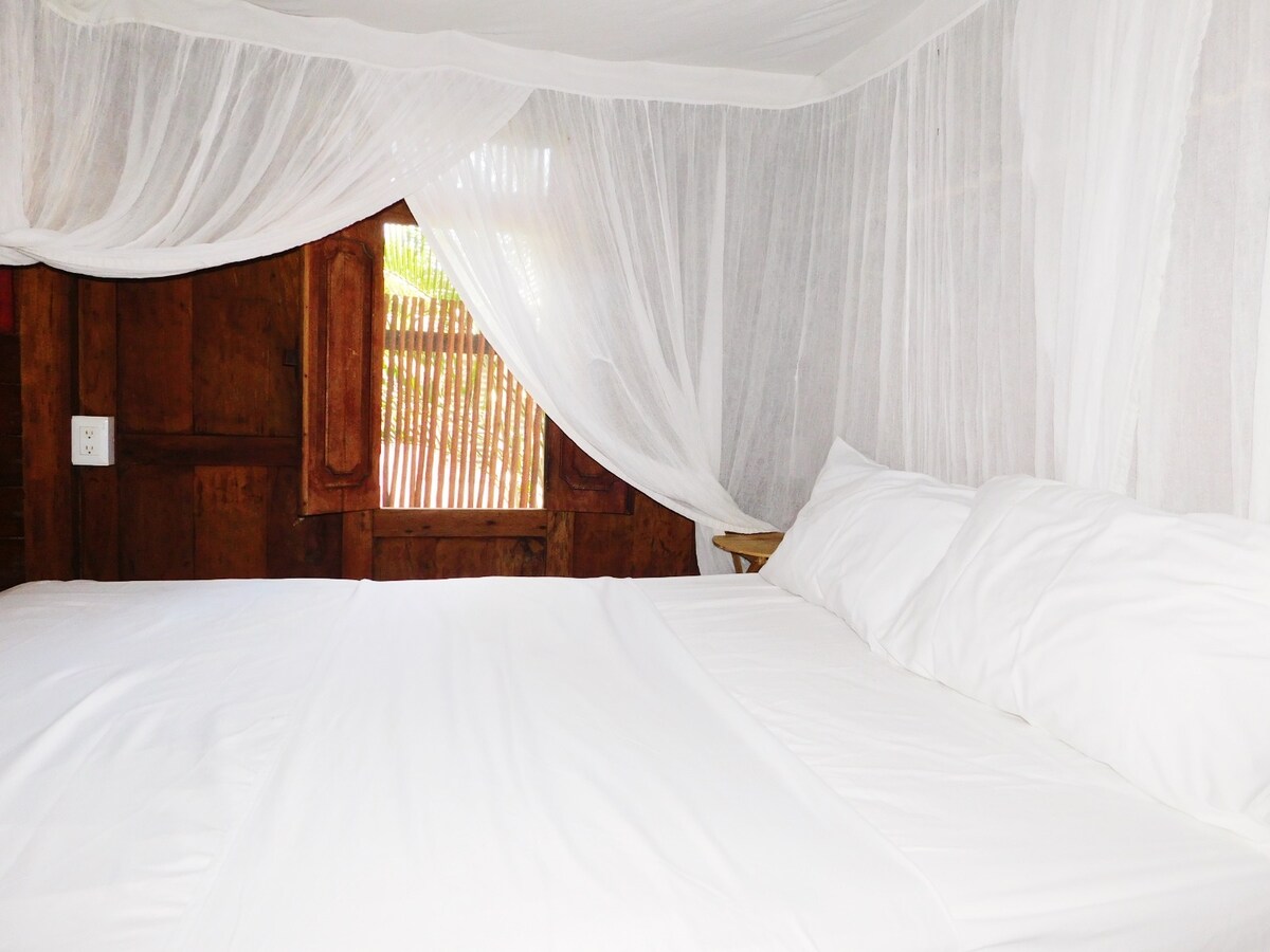 Cabaña rustica doble, localizada en un Lodge tropical , de construccion tradicional dominicana (madera y cana) . Cama queen. 1 baño completo ensuite. Capacidad para 2 personas. Sabanas y toallas gratis. Limpieza diaria. Agua caliente. Ventilador. Mosquitero. Lodge tiene PISCINA, jardin con Barbacoa, y bar/cafeteria. Wifi y Parking gratis . Se sirven desayunos, almuerzos y cenas por un coste adicional. Se organizan tours.