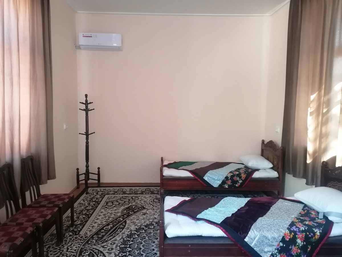 Habitación limpia, cómoda con todos los servicios. Familia muy hospitalaria. Es posible cocinar tanto a sí mismo como utilizar los servicios del propietario. Cerca hay muchos lugares de interés y comida. Se encuentra a unos 3 km de la plaza Registan.