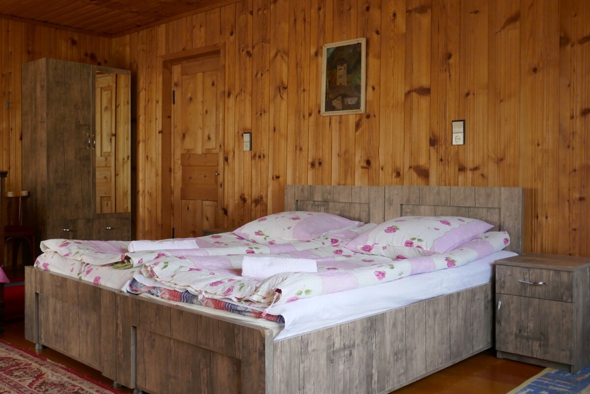 Kick back and relax in this calm, stylish space. Take one comfortable, modern bedroom with 2 single beds and private bathroom. Room has all the amenities you may need. We can prepare delicious Georgian dishes, breakfast, lunch or dinner on request. Hosts are very friendly and openminded, they will do their best to make your stay distinctive and unforgettable. Thank you for staying with us !