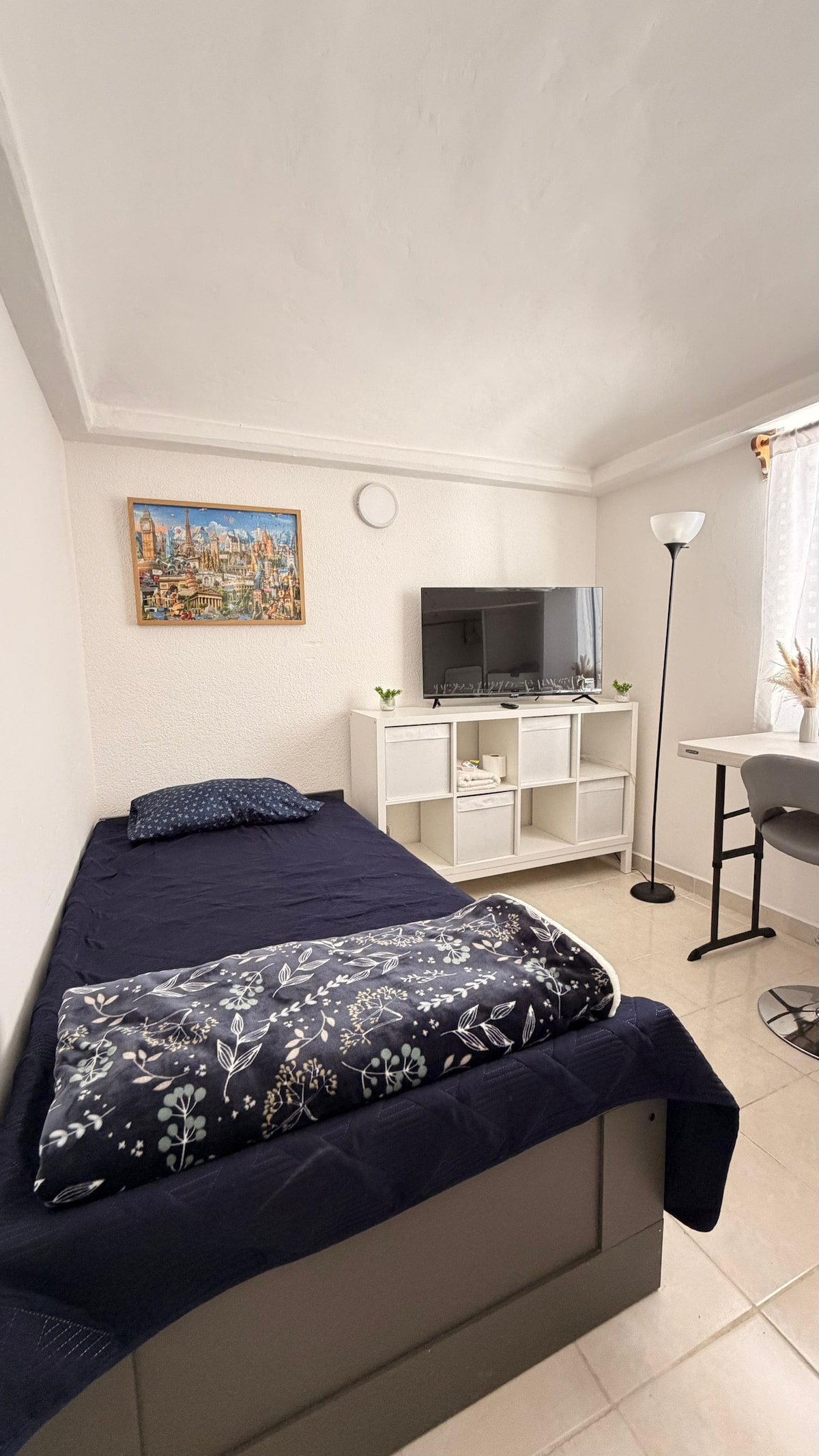 Habitación cómoda y acogedora con cama individual para 1 persona, ideal para estancias cortas o largas. Cuenta con cama confortable, ropa de cama limpia, buena iluminación, escritorio y espacio para descansar. Ambiente tranquilo, perfecto para relajarte después de un día de actividades. Excelente opción por su relación precio–calidad. Tu estancia incluye desayuno (agua, café o té, pan y/o fruta). Ven a conocernos.