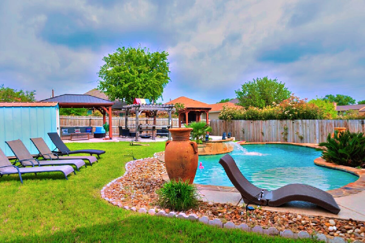 🏡Amplio 4‑bd, 3‑baños con piscina privada durante todo el año (calefacción opcional). A minutos de DT, aeropuerto y atracciones de SA. 📍 Cerca • Alamodome, River Walk, Pearl, zoológico, museos: 10–15 minutos • Six Flags y UTSA: 15–20 minutos • SeaWorld y Lackland: 20-25 minutos 📝 Obligatorio: se debe firmar el contrato de alquiler y la exención de responsabilidad 🔥 Calefacción de piscina disponible por un cargo adicional 🎥 Seguridad: las cámaras exteriores monitorean el patio delantero y trasero las 24 horas del día, los 7 días de la semana