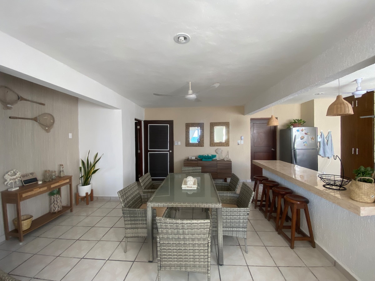 Precioso Departamento frente al mar, ideal para tomar un merecido descanso en el mejor lugar de Yucatan El departamento cuenta con cocina equipada, aire acondicionado en las 3 habitaciones + pequeño cuarto de servicio, tv, WI FI de alta velocidad 2 salas y 2 comedores así como cocina equipada con barra Vista espectacular El edificio cuenta con: Elevador Playa privada Acceso directo a la playa Piscina para niños Piscina para adultos Frente a la playa Camastros y regaderas