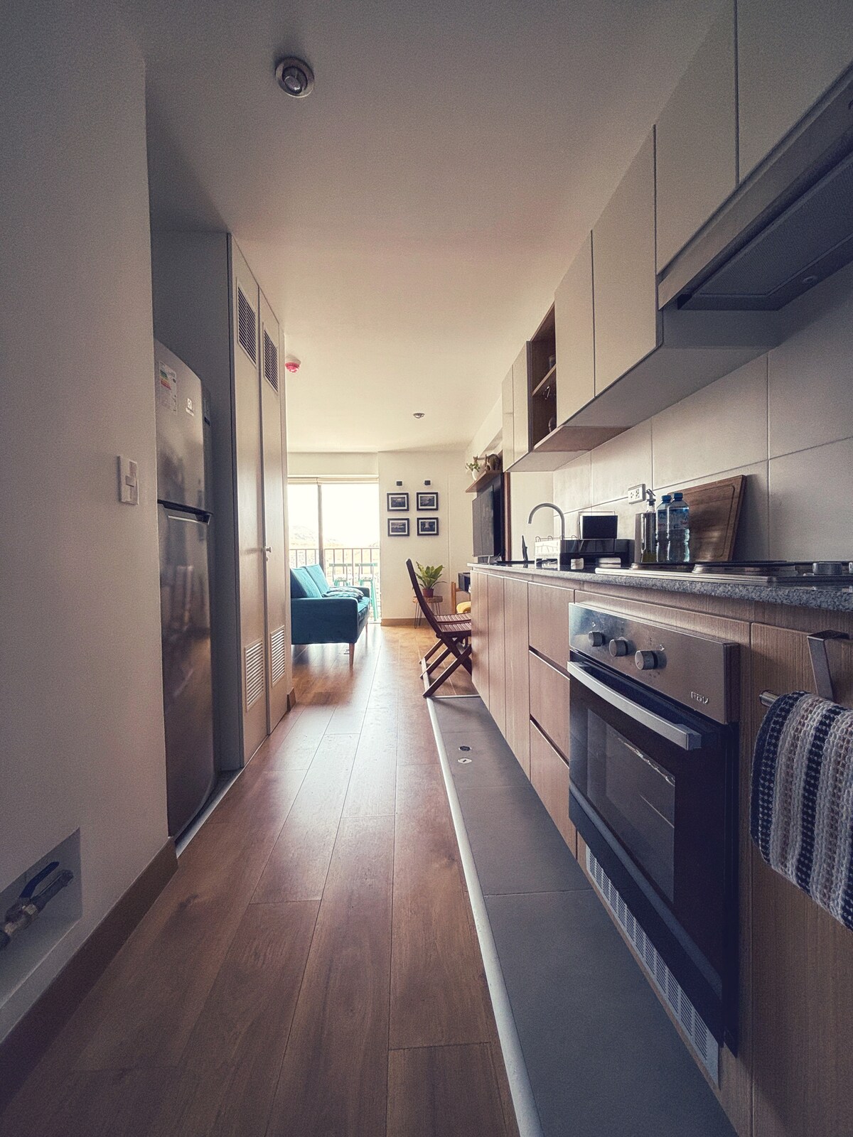 Habitación de 35mts2 con kitchen tipo americana en 4to piso con entrada independiente, amoblado (cama de 2 plazas, mueble modular doble, cómodas y closet) cuenta con tv Smart de 42" con NETFLIX y cable, un refrigerador, cocina, hervidor de agua, licuadora, tostadora, arrocera, ducha con terma, wifi, menaje en la cocina (vasos, tazas, platos, cubiertos), también proporcionamos toallas de manos y de baño.