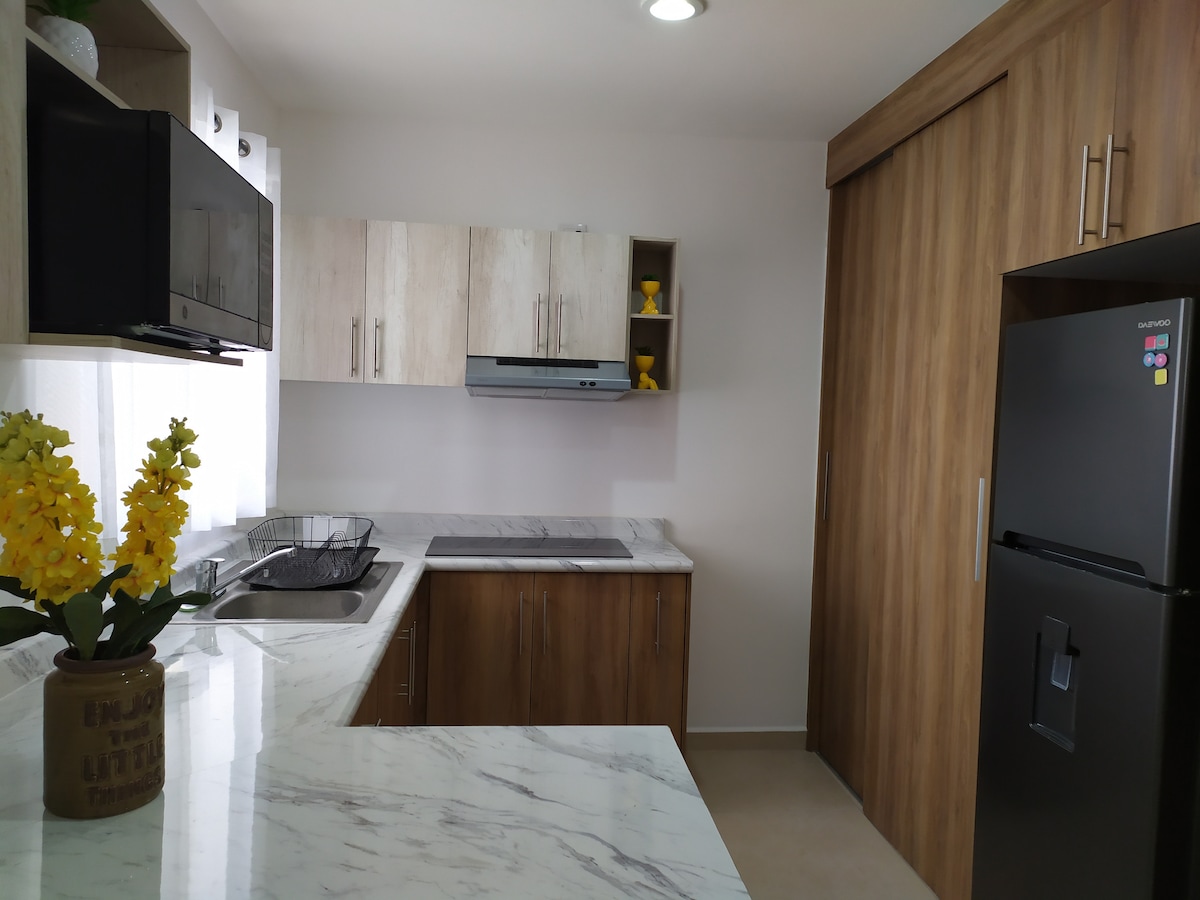 Este lugar único tiene su propio estilo, nuevo y moderno pero te hace sentir como en casa , completamente equipado, con excelente ubicación y vías de acceso, se encuentra en coto, cuenta con vigilancia, alberca y trota pista. Es lugar sereno y relajante estamos seguros que lo disfrutarán al máximo