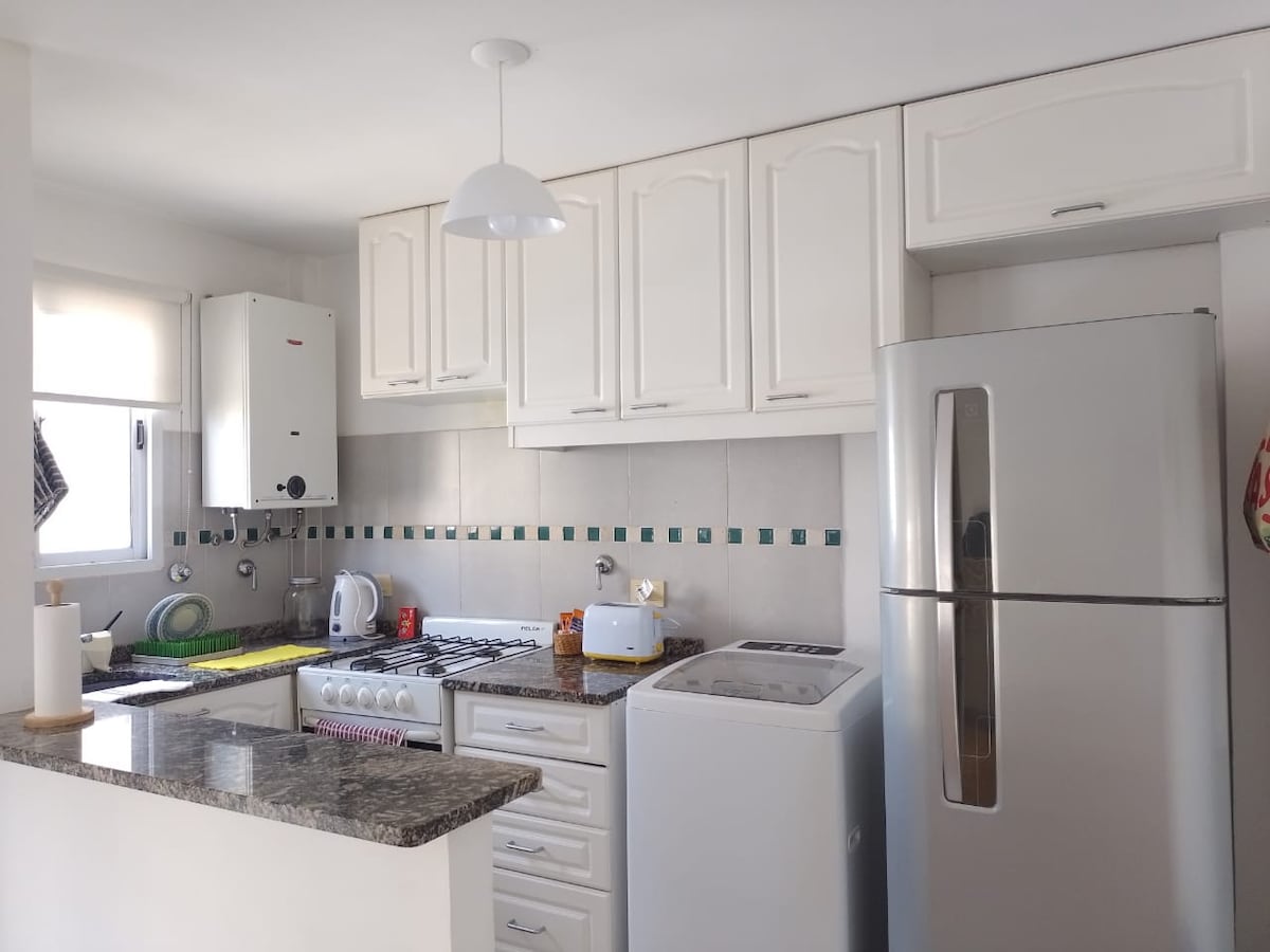 Super práctico y luminoso. Muy céntrico (a 50mts de la estación de tren y 300mts de avenida principal con mas de 10 opciones de colectivos). PARKING PRIVADO INCLUIDO. 1 dormitorio con cama matrimonial, baño completo. Full amenities: Aire Acondicionado en los dos ambientes, TV con Chromecast, Wi-Fi, Lavarropas, Microondas, Tostadora, Cafétera y Plancha. Elementos de cocina y vajilla totalmente equipado.