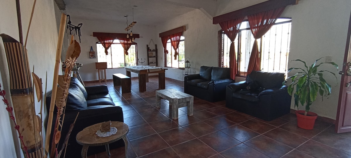 Cabaña encantadora en medio de un bosque mágico de bugambilias, romero granados y guayabos...para disfrutar de una placentera estancia. Con servicio de café, pan artesanal recién horneado, venta de cosmética natural y artesanía elaboradas por artistas de nuestra Casa de Artes "Atrapasueños'
