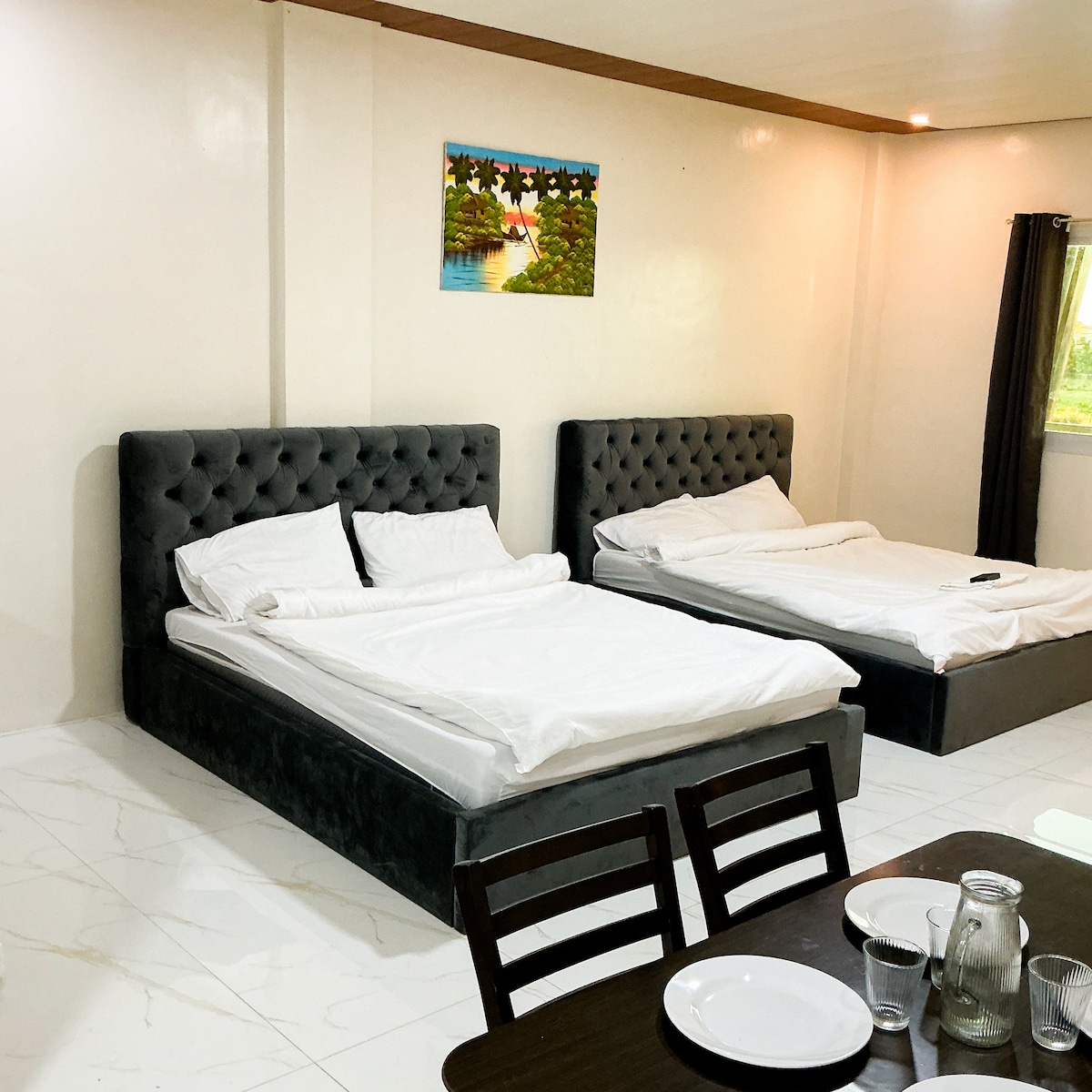 Just a few steps from the shore 🌊 and right beside 7/11 🏪 — everything you need within reach! This cozy room has a window with a nice view 🌅, aircon, fast WiFi, own ref for your food and drinks, and your own private bathroom 🚿. You’ll also have access to a shared sala. Simple, comfy, and perfect for your beach escape ☀️✨