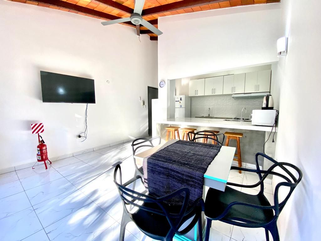 Monoambiente moderno, cómodo y con luz natural todo el día. Tiene balcón con vista abierta, ideal para relajarse o trabajar. Está bien ubicado, cerca de todo pero fuera del ruido del centro. El edificio ofrece pileta, gym, parrillero, sala de reuniones con proyector y TV, salón de cartas, sala de niños con TV y área de lavado con máquinas. Equipado con aire, Wi-Fi, smart TV, cocina completa y escritorio. Ideal para estadías cortas o largas. Permite alojar hasta 3 personas.