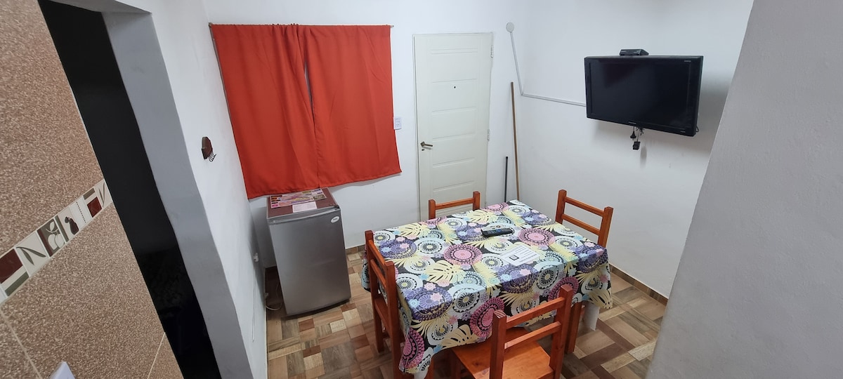 El precio es por una o por 3 personas. Cómodo departamento para 3 personas, totalmente equipado: vajilla, ropa de cama y baño, cocina, heladera, DirecTV, WIFI, calefacción y ventilación, actualmente no cuenta con cochera. Ubicación ideal: - A 4 cuadras de la Terminal de Ómnibus - A 3 cuadras del Centro - A 2 cuadras de Plaza San Martín - A 1 cuadra de Pueblo Encanto Patio individual con mesa, reposeras y parrilla. Alojamiento habilitado. No se aceptan mascotas. La casita de Tuchi